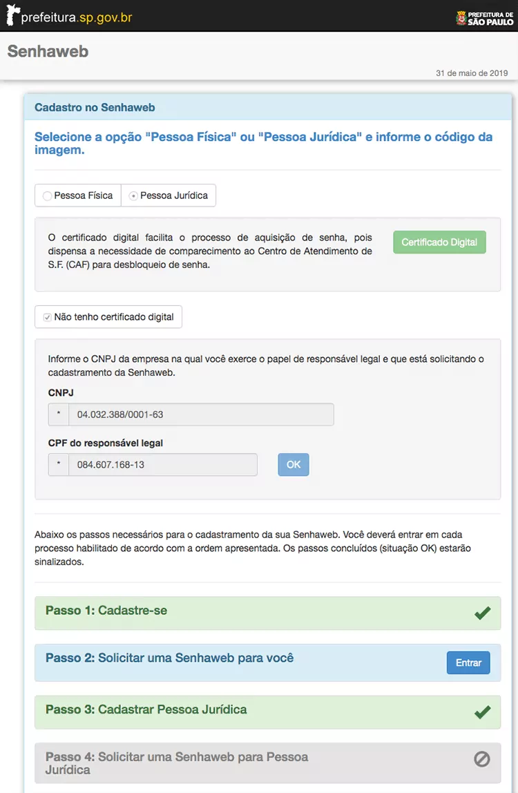 Faz parte do processo de abertura da empresa e, através dela, é possível acessar o sistema da prefeitura.